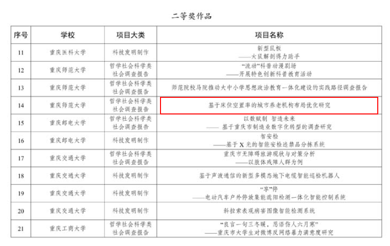还荣获重庆市二等奖一项,三等奖一项。