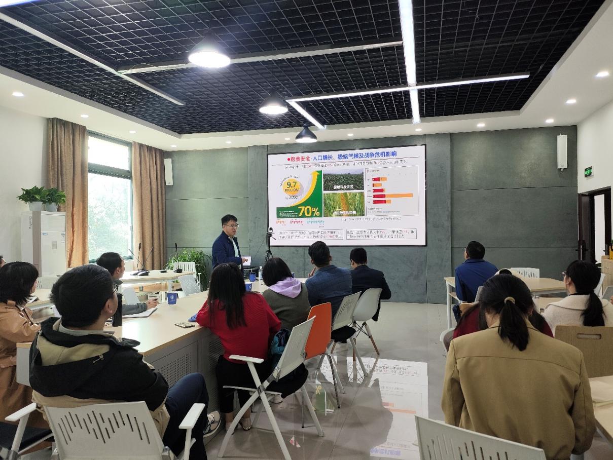杨贵军研究员详细介绍了农作物种植分布遥感精准监测、作物物候高时空遥感监测、作物养分定量遥感机理模型和区域尺度病虫害监测诊断等相关研究。杨老师展示了如何借助遥感手段,把“立地”的事儿做成“空天地一体化”的智慧农业,服务于国家、地方、企业智慧农业发展需求,取得了“顶天立地”的科研成果。杨老师研究报告主题新颖、内涵丰富、智慧农业案例生动。学术报告后,与会师生就各自感兴趣的内容与杨老师进行了充分交流和热烈讨论,现场气氛非常活跃。本期学术报告在热烈的掌声中顺利结束。