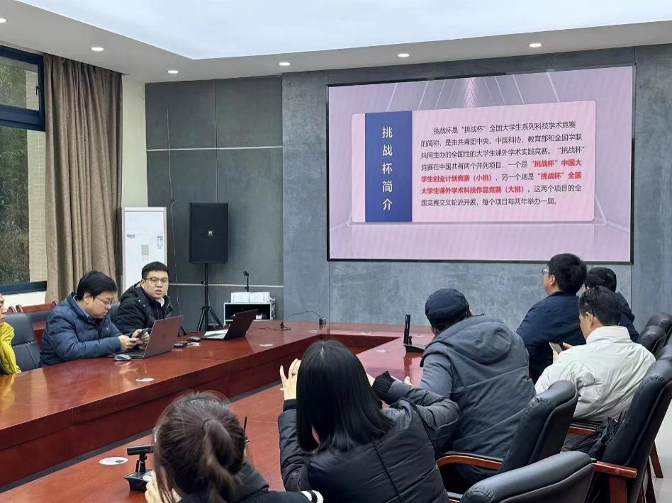 会议伊始,研究生辅导员汪垚老师介绍了大学生课外科技作品竞赛的基本情况,并详细阐述了校选拔赛的参赛基本条件、参赛注意事项、作品类别、参赛要求、参赛历程五个方面。随后,熊宇副书记就第十八届“挑战杯”参赛指引、选题来源、论文撰写、竞赛误区四个方面展开了详细的讲解,为在场师生提出更具方向性与针对性的建议。除此之外,熊宇副书记结合“挑战杯”专项比赛,对“红色专项”、“揭榜挂帅专项赛”进行了全面讲解,增进了在场师生对大赛的认识。会议最后,刘睿副院长重点展示了海角网