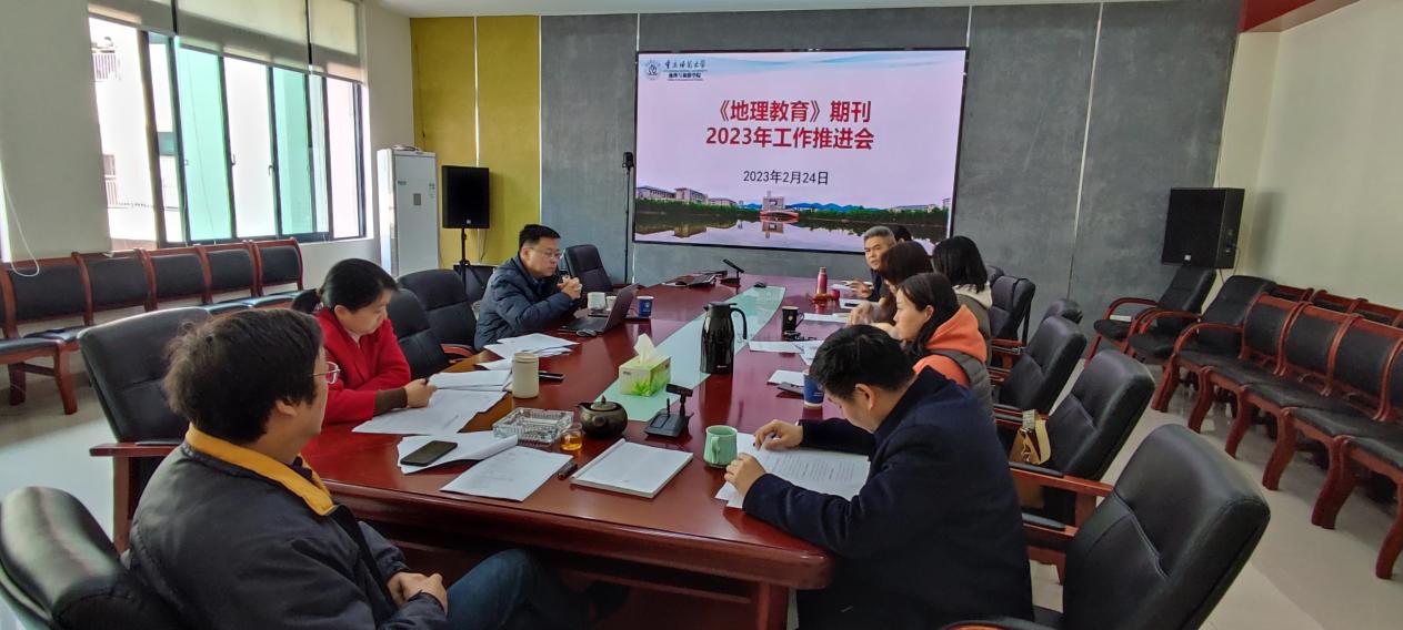 为推进《地理教育》高质量发展,2月24日,海角网 在致用楼335会议室召开了《地理教育》期刊2023年工作推进会。学院胡芳书记、主持工作的韦杰副院长、分管《地理教育》的刘睿副院长、《地理教育》编辑部成员及部分编委老师出席会议。会议由副院长刘睿主持。