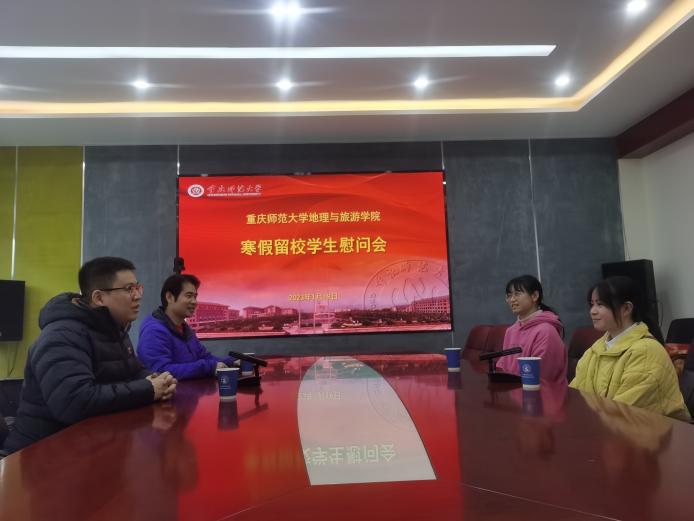2023年1月19日,学院党委副书记熊宇、团委书记瞿聪与留校学生欢聚在致用楼335会议室,召开了寒假留校学生慰问会。熊宇副书记详细询问了同学们的留校原因与在校生活情况,了解她们有无需要解决的困难,叮嘱做好假期规划,保持良好作息、劳逸结合,同时注意人身财产安全,多与家人沟通交流,鼓励她们有效利用寒假时间,度过一个平安、充实、愉快、有意义的寒假和春节。在暖意融融的氛围中,熊宇副书记和瞿聪老师代表学院送上新春慰问大礼包和美好祝福,留校同学表示学院无微不至的照顾让自己感受到了家的温暖,留校期间她们将安排好在校学习和生活,努力充实自我,争取新的一年学业“兔”飞猛进。