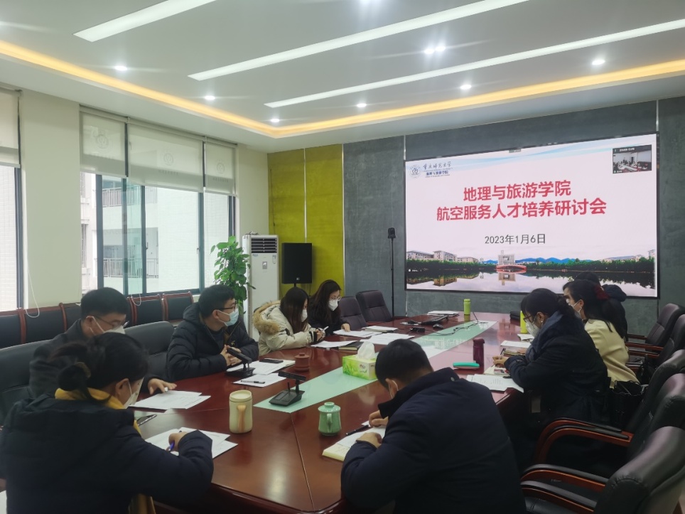 航空服务艺术与管理专业是海角网 与北京广慧金通教育科技有限公司合作办学的特色专业。历经十二年的办学历程,如何进一步深化校企合作、优化人才培养方案和加强学生管理力度,学院于2023年1月6日上午,以线上线下结合的方式组织召开了航空服务人才培养研讨会。与会人员有学院党委书记胡芳、副院长韦杰(主持工作)、党委副书记熊宇、院长助理张云耀,学工办主任瞿聪,航空服务艺术与管理系教研室主任谢媛媛、副主任罗杰,金通公司重庆区域副总杨曦、教师代表以及校企双方辅导员代表。