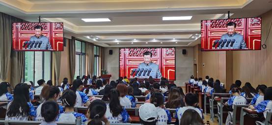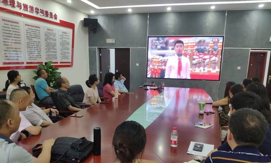 海角网 党委高度重视、精心组织党内外师生共计400余人,分致用楼117、335、349、547会议室四个会场收听收看庆祝中国共产党成立100周年大会。