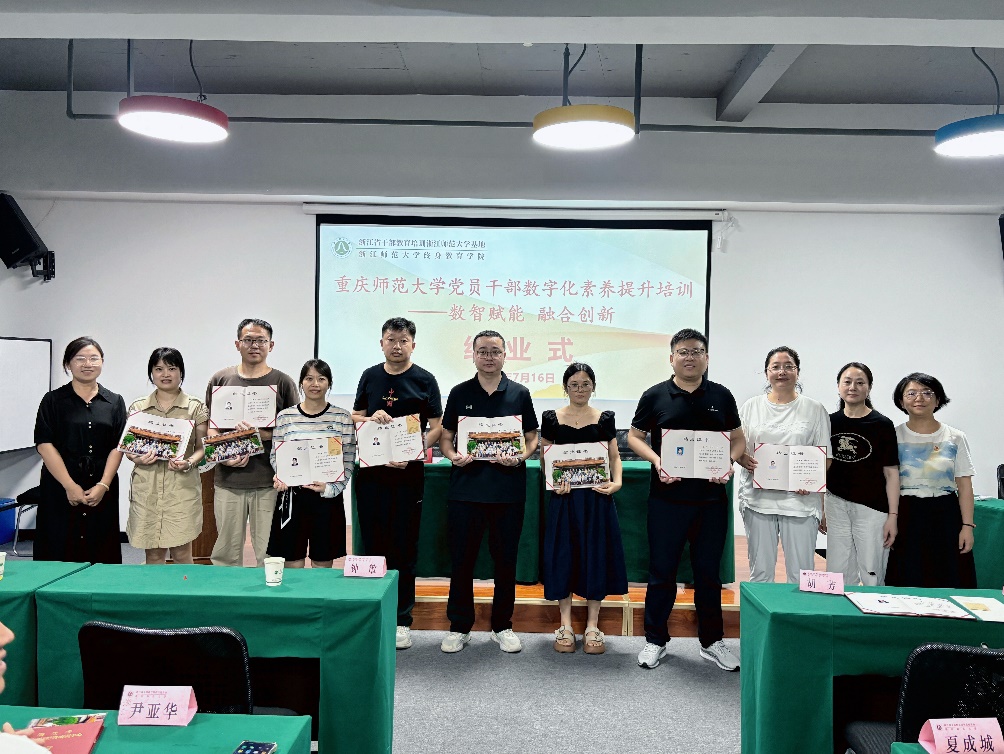 胡芳书记、经济与管理学院钟敏书记和浙江师范大学终身教育学院杭州培训中心俞冰主任共同为全体学员颁发结业证书并合影留念。在热烈掌声中,结业仪式圆满结束。