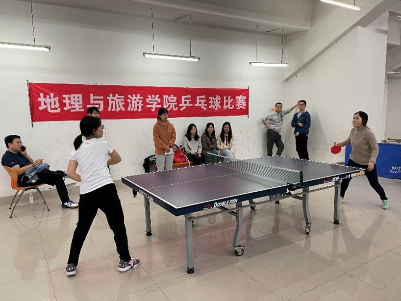 乒乓球比赛,在学校体育馆举行。本着“友谊第一、比赛第二”的体育精神,本次比赛设置了男单、女单与混双比赛,采取三局两胜的三轮赛制,分三组分别进行。学院地理科学系、地理信息科学系、旅游管理系、酒店管理系、城乡规划系及教辅学工等,共40余名教职工参赛。本次比赛学院党委高度重视,学院党委书记朱平、院长罗仕伟、副院长胡志毅、副院长韦杰亲自到现场为参赛队员鼓劲、助威,学院工会干部全程、全员参与组织、服务,为比赛提供最佳的后勤保障服务。