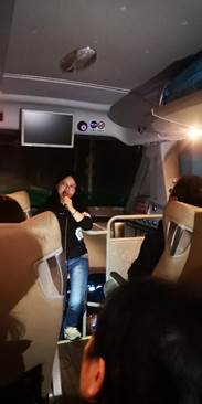 教职工的大巴车上,工会“迎新人、凝团队”活动拉开序幕,在进行了简单行程、活动内容介绍后,工会破冰活动正式开始。车上原预计安排1小时的自我介绍和才艺表演,在大家的热情参与下,活动一直持续了三个多小时,每位老师都进行了全面清晰的自我介绍,许多老师还进行了才艺表演,中途还间插部分即兴活动,直到下车大家还意犹未尽。通过这次破冰活动,新老员工互相加深了印象,彼此了解了个人喜好,增进了情感。