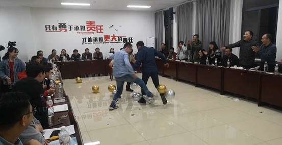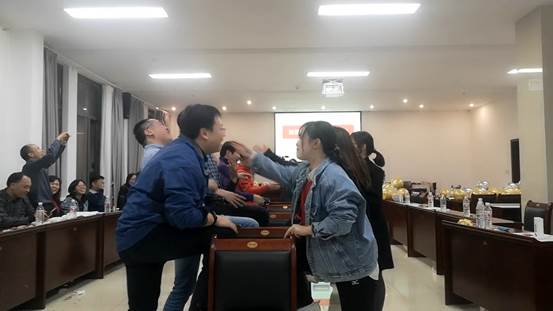 2020年11月14日晚上,工会在城口蔚徕酒店开展团队挑战活动,老师们分组开展联谊活动,先后进行了“你比我猜”“踩气球”“筷子夹乒乓球接力”“运气球接力”等挑战赛,中途间插各队老师们准备的团队和个人节目。