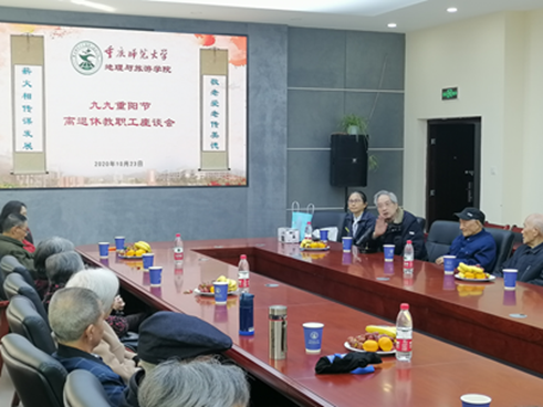 于学院楼220会议室举办“敬老爱老传美德,薪火相传谋发展”离退休教职工重阳节主题座谈。学院党政工团负责人及部分教师代表参加了座谈会。会议由学院党委书记朱平主持。