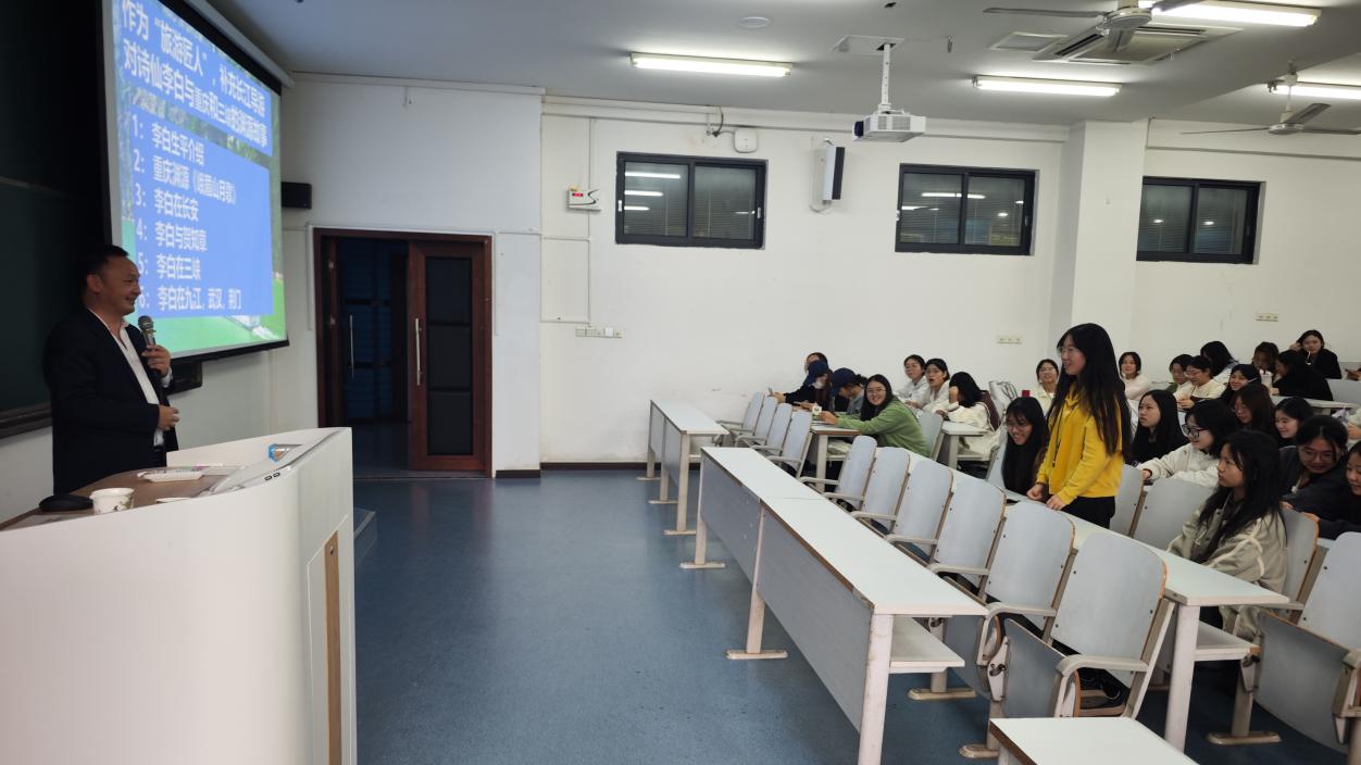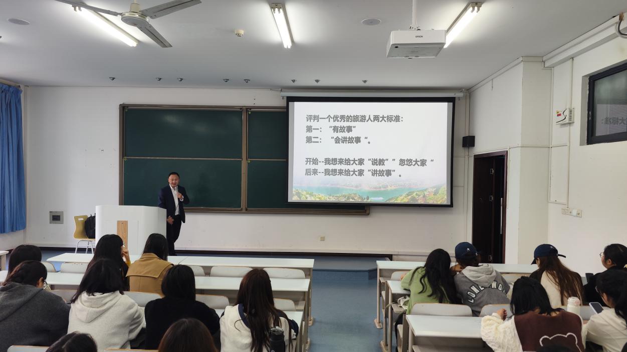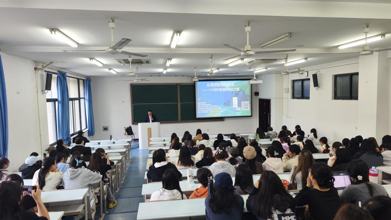 2024年11月14日,旅游管理系邀请了重庆长江黄金游轮公司营销分公司副总经理王一,给2024级旅游管理类新生开展题为《从导游到营销副总——一个涉外导游的职业之路》的专业讲座,分享了自己的职业发展经历和行业从业经验,旨在帮助同学们了解旅游行业人才要求,树立专业思想,为未来职业发展提供有益指导和启示。