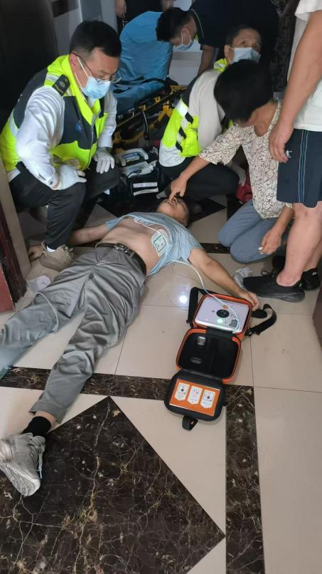 航空服务系巫昊燕老师刚刚抵达南京家中,家中老人因高温爆发心梗导致心脏骤停。巫昊燕老师在第一时间确认患者失去意识和呼吸心跳后,一边指导家人拨打120急救电话,同时在“黄金4分钟”内进行心肺复苏术(CPR);在心肺复苏数分钟发现患者依旧没有脉搏后,指导家人往物业取来自动体外除颤仪(AED),最终在AED两次除颤并持续进行心肺复苏按压的基础上,在120赶来前的15分钟内成功恢复了患者的自主心跳和呼吸。