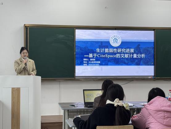 比赛分为初赛和决赛两个阶段,初赛阶段共有53名研究生提交了作品,经专家组评审,遴选出17名选手晋级决赛。决赛现场,选手们精神饱满,态度严谨,汇报内容涵盖了地理学、教育学、工学等多个学科领域,既有深入的基础理论研究,也有丰富的教学实践探索。汇报中选手们充分展现了扎实的学术功底、良好的语言表达能力,同时也引发了在场同学们对学术问题的深入思考,有效促进了学术的交流与碰撞。