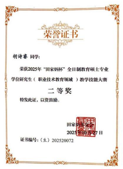 2024级职业技术教育(旅游服务)专业研究生胡诗睿获得二等奖,李俊获得优秀教学设计奖。