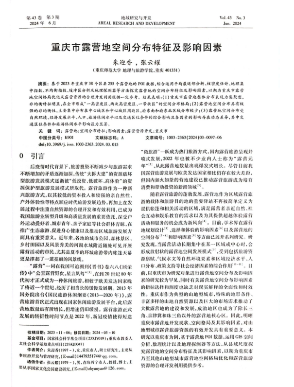 依托该委托成果,进一步丰富完成的《西南地区露营产业影响力指数报告(2023)》在2024智汇文旅创新发展论坛上发布。发布后受到了中国旅游报、光明网、重庆发布、重庆日报、中研网、华龙网、上游新闻报道。依托该项调研,团队还产出硕士毕业论文1篇,学术期刊论文2篇。