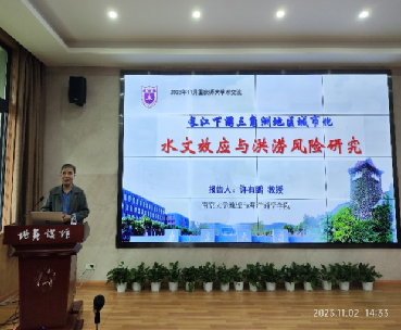 许有鹏教授围绕变化环境暴雨洪涝灾害日益频发的问题,以长三角地区为典型,综合水文观测试验与陆气耦合模拟等手段,分析了下垫面时空演变及其与城市化耦合关系,揭示了暴雨洪涝时空演变规律,探讨了不同因素对洪涝风险的影响和应对措施。许有鹏教授还指出,我国城市化发展与洪涝灾害将会长期处于协同演化的过程,大家要客观看待这一现象。报告引起了在场师生的广泛兴趣,对于师生关切的城市洪水问题,许有鹏教授也与大家交流了看法,并鼓励各位青年学者和研究生积极投身这一研究,为我国城市防灾减灾做出贡献。