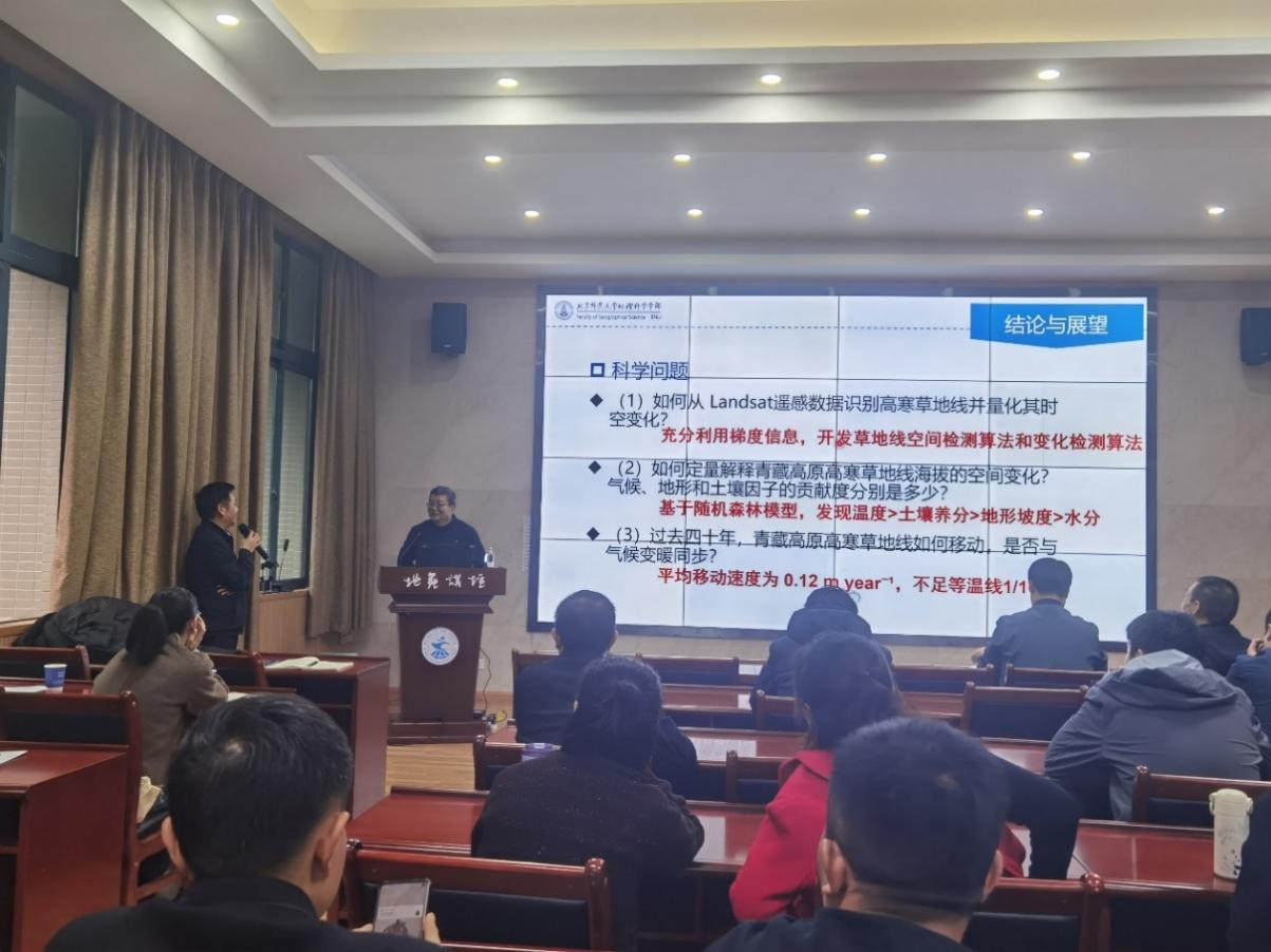 高端学术论坛“地苑讲坛”第十八期在致用楼117会议室顺利举行。本期论坛特邀北京师范大学地理科学学部陈晋教授,作题为“青藏高原草线时空变化的遥感探测”的专题报告。报告由韦杰院长主持,学院教职工及研究生共130余人参加。