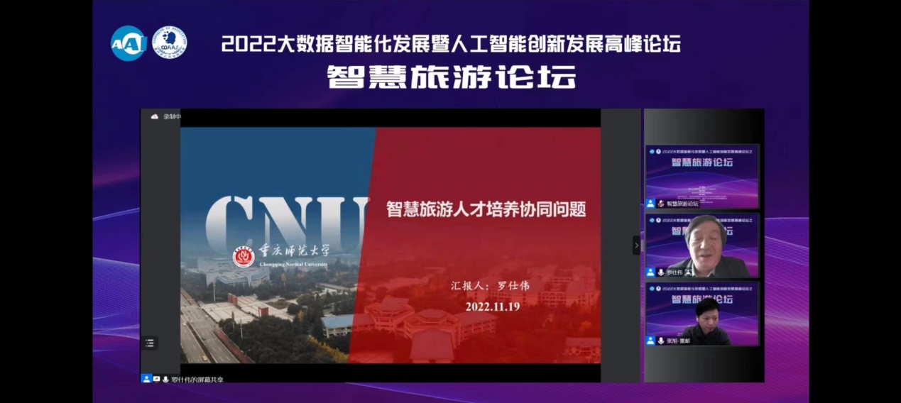 11月19日上午,由中国人工智能学会、重庆市人工智能学会主办,重庆市文化和旅游发展委员会指导,重庆邮电大学、旅游多源数据感知与决策技术文化和旅游部重点实验室、中国人工智能学会智能服务专委会、重庆市大足区文化和旅游发展委员会承办,重庆市文旅科技融合发展促进会协办的“2022大数据智能化发展暨人工智能创新发展高峰论坛”之智慧旅游论坛,以线上方式成功召开,共吸引了13.5万余人在线收听。