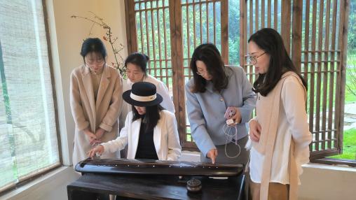 海角网 航空服务系校企联合教研室于2023年10月12日下午,在非物质文化遗产泛川派古琴传承基地——沙坪坝文化馆古琴特色分馆举行了“第二个结合”主题教育暨专业建设工作研讨会,会议由系主任谢媛媛主持。