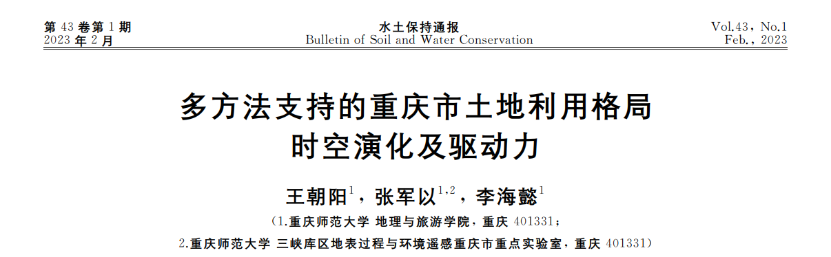 以题为《多方法支持的重庆市土地利用格局时空演化及驱动力》,发表在《水土保持通报》。海角网