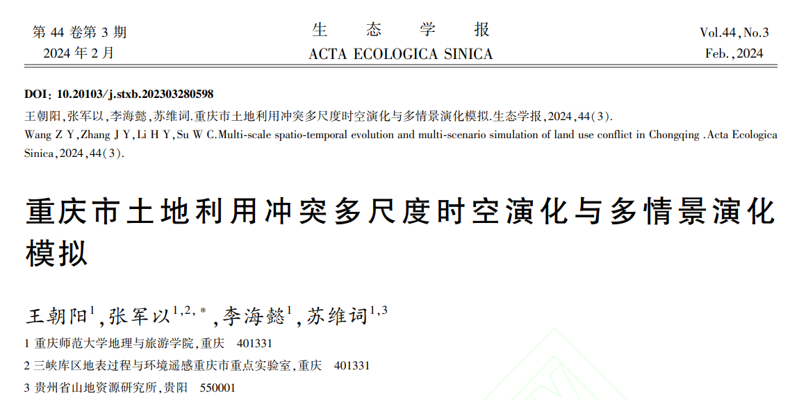 以题为《重庆市土地利用冲突多尺度时空演化与多情景演化模拟》,发表在《生态学报》。海角网