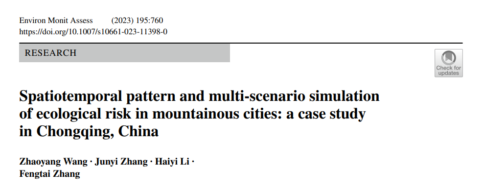 系列研究成果以题为《Spatiotemporal pattern and multi-scenario simulation of ecological risk in mountainous cities A case study in Chongqing, China》发表在国外著名期刊《Environmental Monitoring and Assessment》。海角网