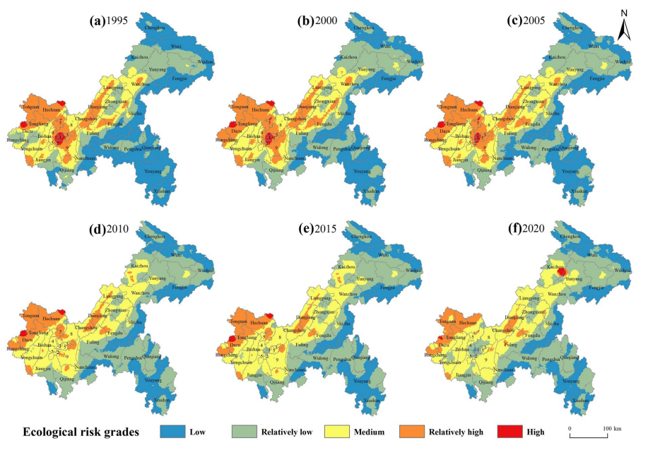 对景观生态风险的研究发现,重庆市景观生态风险演变具有明显的阶段性特征,高风险区缩减明显;受地形、经济等因素的制约,呈现西高东低的分布特征。
