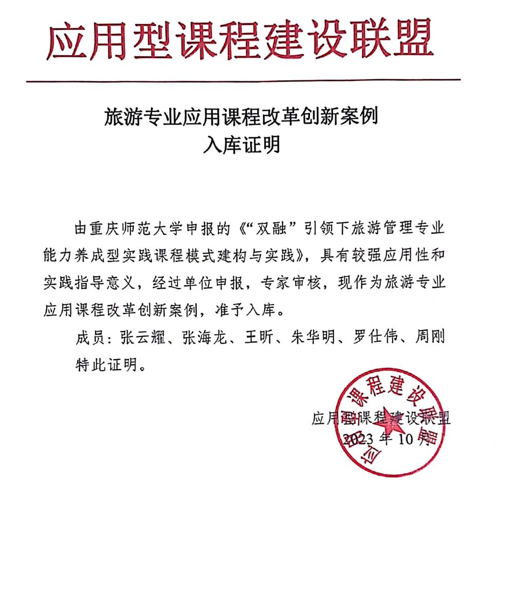 海角网 课程再度入选国家旅游专业应用型课程改革创新案例库