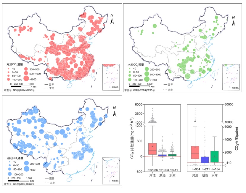 (图1中国内陆水体CO2排放空间分布格局)