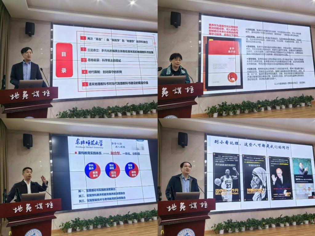 应论坛特别邀请,华东师范大学段玉山教授作了题为“晚清地理学教材整理研究”的报告,系统介绍了清末民初地理教科书多元化发展历程及其对当代地理教科书建设的镜鉴价值。人民教育出版社韦志榕编审作了题为“浅谈基础地理教育目标体系的建构”的报告,从培养目标、课程目标到教学目标,系统阐述了地理教育目标系统建立的关键,指出地理教学目标应在方法、过程和结果上体现系统性思想。东北师范大学王向东教授作了题为“指向创造力的地理卓越教师培养探索与实践”的报告,从培养目标、培养模式、实践教学三个层面系统介绍了东北师范大学地理卓越教师的培养探索与经验。广州大学教授吴志峰教授作了题为“地理学STEM育人价值与地理思维培养”的报告,深度阐述了地理学STEM育人价值以及地理思维培养的思考。