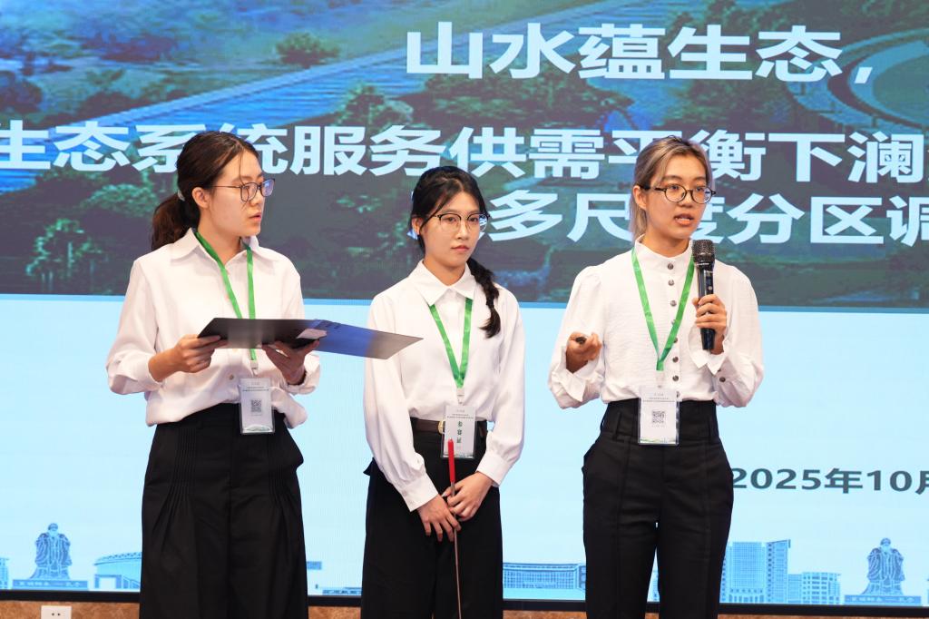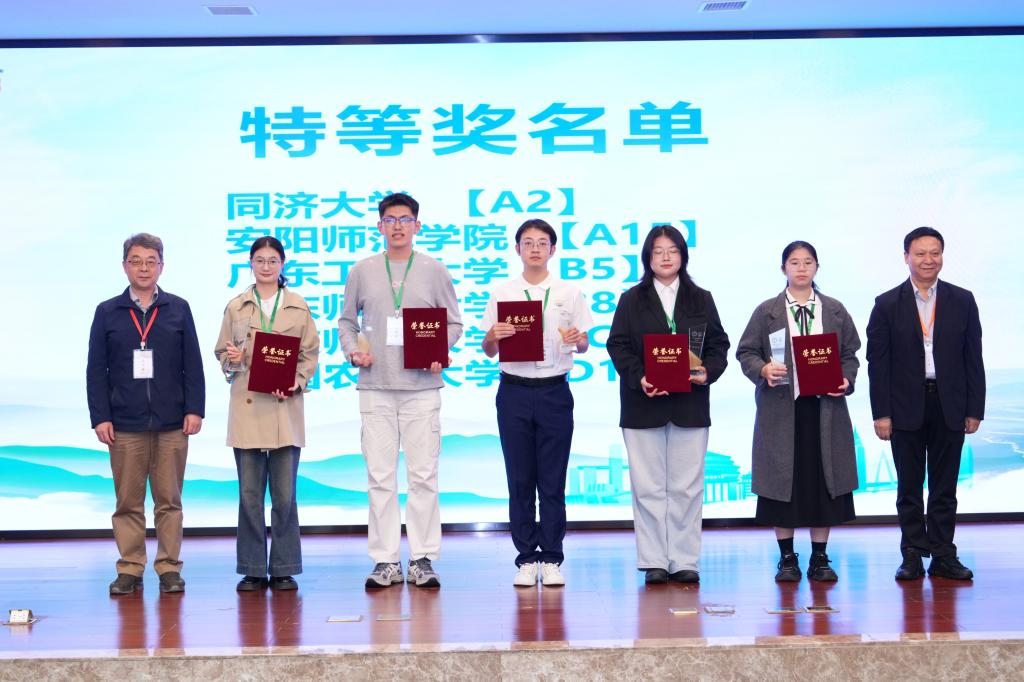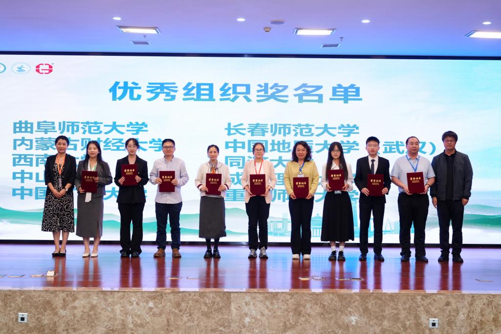 颁奖仪式上,大赛评审组宣布获奖名单,并为获奖队伍颁奖6支队伍获特等奖,14支队伍获一等奖,48支队伍获二等奖,10家单位获优秀组织奖,10支队伍的指导老师获优秀指导教师奖。导教师代表曾春芬教授在发言中分享了如何引导学生以“科技”的画笔,描绘“绿色未来”的宝贵经验。获奖学生代表何思莹表示本次大赛让他们更加坚定了运用所学知识服务自然资源治理现代化的决心。