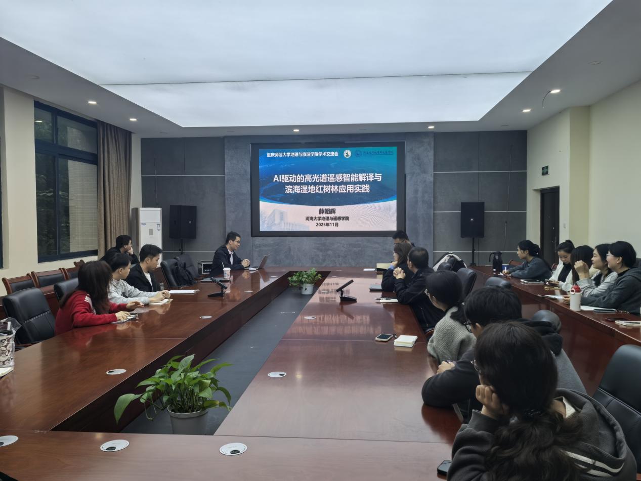 人文地理、GIS创新研究团队邀请河海大学地理与遥感学院薛朝辉教授作题为“AI驱动的高光谱遥感智能解译与滨海湿地红树林应用实践”的学术报告。报告在致用楼220会议室举行,由张军以教授主持。学院魏兴萍教授、杨颖副教授、汪垚副教授、雷超桂副教授、杨国胜副教授、李林芝博士、王小丽博士,以及学院人文地理和GIS专业硕士研究生等50余人参加了报告会。