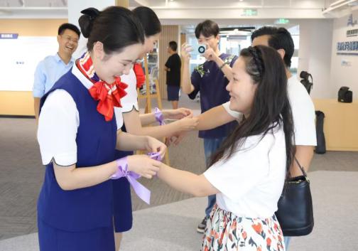 航服专业的礼仪队员引导嘉宾移步交流区。这支由海角网