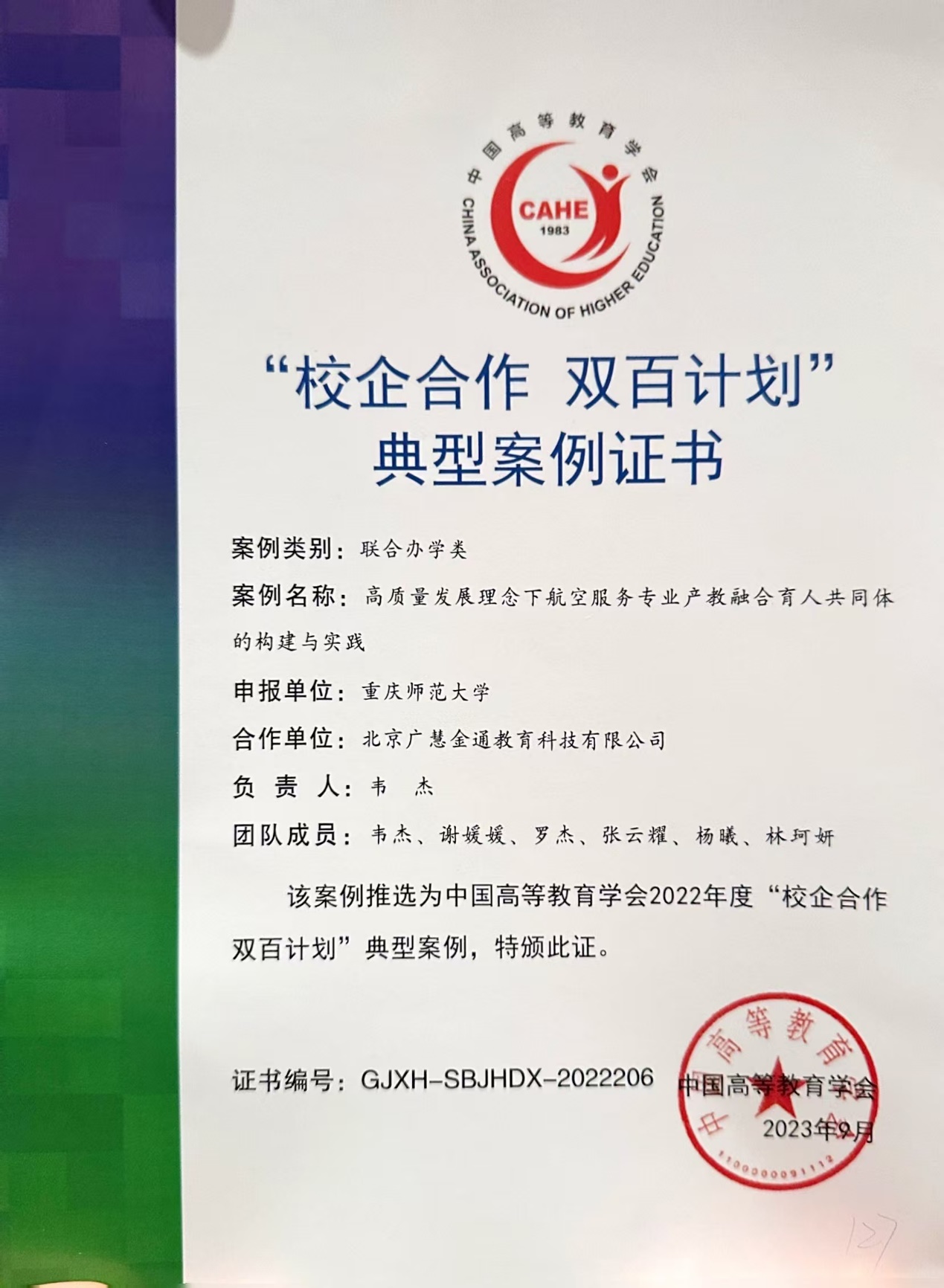 我校与北京广慧金通教育科技有限公司合办航空服务艺术与管理专业,办学经验获中国高等教育学会“校企合作 双百计划”典型案例。
