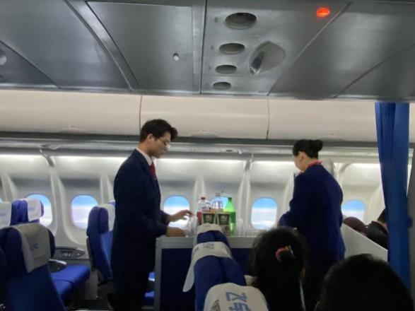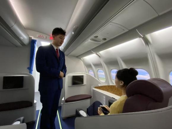 新成员们来到了飞机模拟舱。这里模拟了真实的飞机客舱环境,让新成员们能够身临其境地感受到飞行的乐趣和空乘人员的工作状态。在模拟舱内,新成员们不仅了解了飞机的各项设施和设备,还体验了空乘人员为乘客提供的各项服务,如安全演示、餐饮服务等。