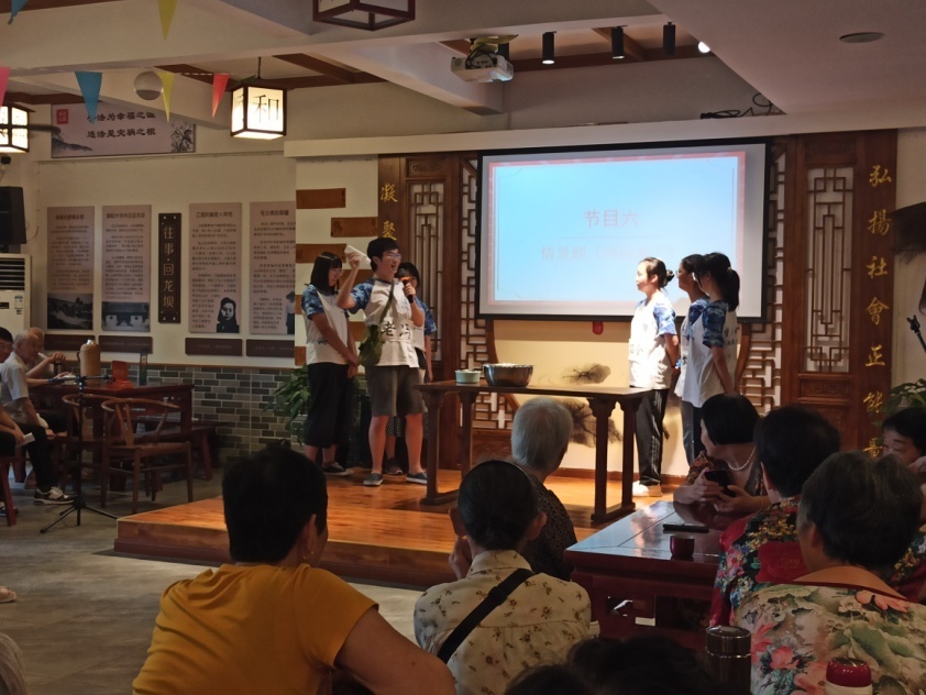 志愿者们在为老人和小孩子们表演小品《鸡汤来咯》 (社区工作人员杨理晴 摄)