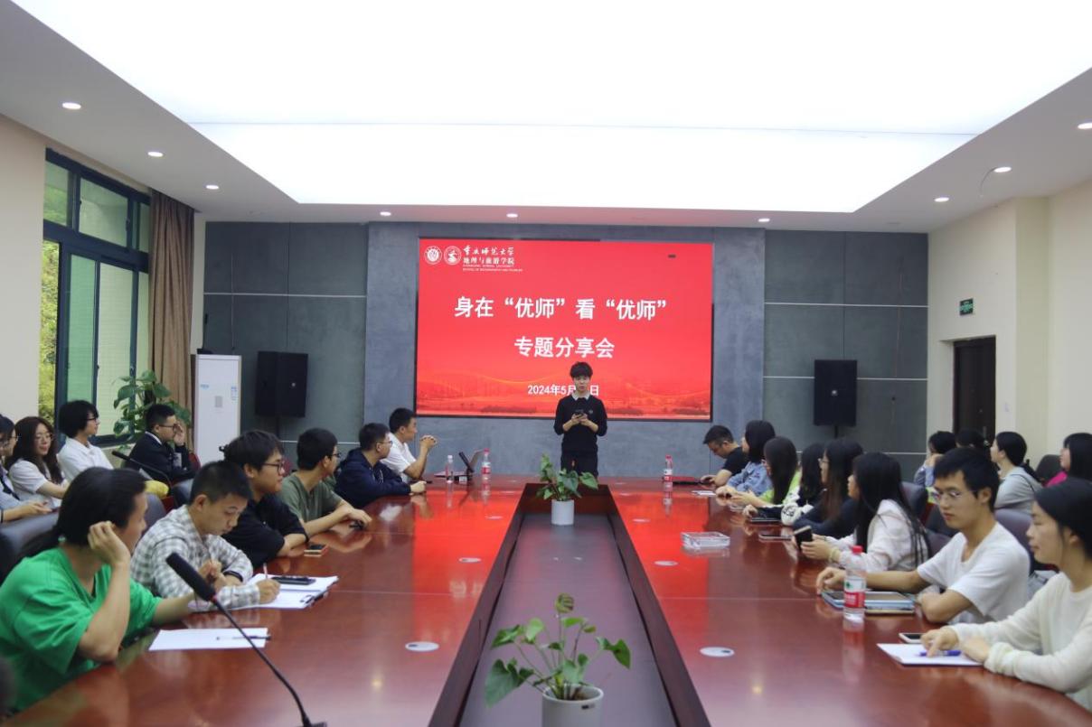 于4月27日下午在致用楼220会议室开展了学风建设月系列活动之“身在‘优师’看‘优师’专题分享会”。分享会邀请了渝中区地理教研员许方林老师和鲁能巴蜀中学教研处副主任严磊老师,旨在促进师生之间的交流学习,提升学生职业认同感和职业素养。