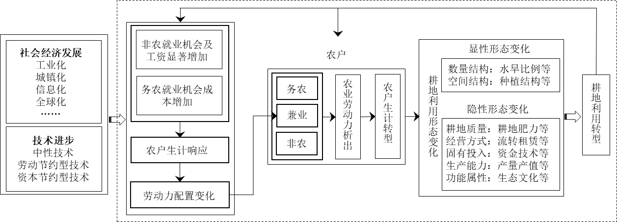 乡村振兴建设加速了城乡要素双向流动,显著影响了农户生计转型和耕地利用转型的耦合作用关系。本研究基于农户生计转型视角,从城乡和乡村农户两个维度,解析农户生计转型与耕地利用转型耦合机制研究发现农户生计转型与耕地利用转型分别在城乡层面存在着基于产业→人口→生计→耕地链条的农户生计转型与耕地利用转型时空耦合乡村层面存在着基于农户“生计生产耕地”链条的农户生计转型与耕地利用转型时空耦合。农户生计转型分化及乡村发展主体多元化引起的价值诉求差异化,进一步驱动了耕地利用多功能转型与乡村多功能转向。耕地利用在生态产品供给、休闲康养、文化传承等多功能边界的拓展,加速推动了耕地利用、农业生产及乡村发展的多功能转型。